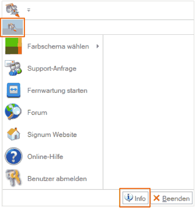 Klicken Sie im Menü oben links auf das Produktlogo von Orgasoft.NET und anschließend auf den Button "Info".
