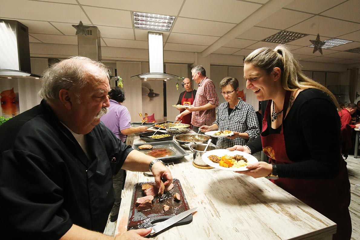 - Wildgoulasch, Entenbrust, Spätzle, Röstitaler, Wirsing und Kürbisgemüse wurden als Hauptgericht in Form eines Buffetts serviert. Da war für jeden etwas dabei.