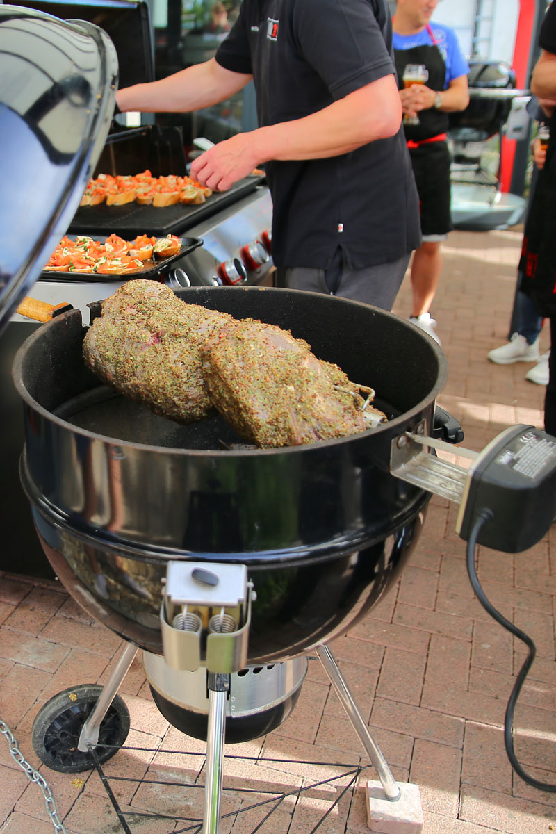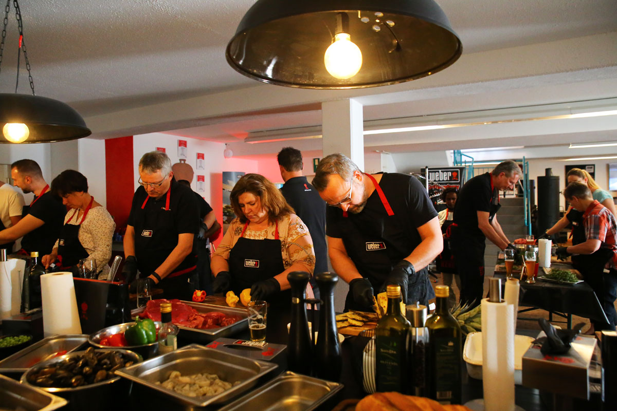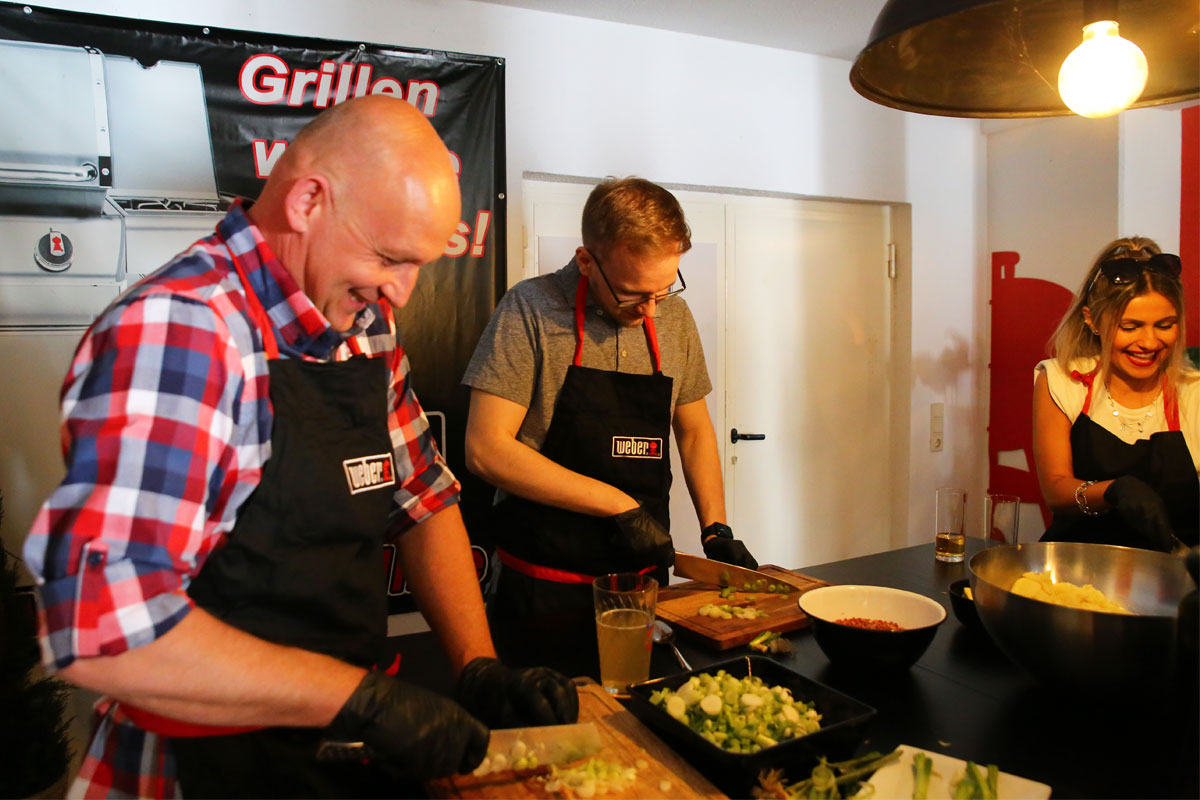 Nach einer Einführung in die unterschiedlichen Arten von Grills wurden erst mal die Messer rausgeholt und die Zutaten fürs Essen geschnitten. Es wurde gerührt und geknetet, bis alle Gänge des Abends nach und nach auf dem Grill zubereitet wurden – einschließlich der süßen Nachspeise.