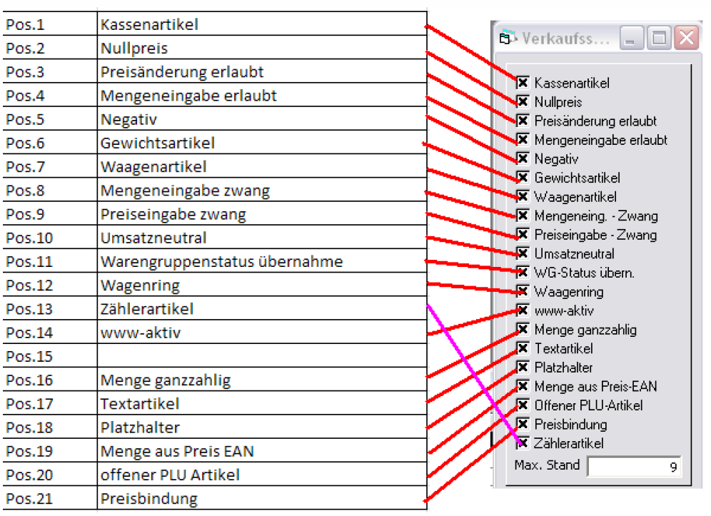 Wo finde ich eine Übersicht ueber die Statusfelder in den Tabellen Artikel (Kassenstatus), Handelsartikel (Bestellstatus und StuecklisteJN) sowie ArtikelFilialBestand (Status)?