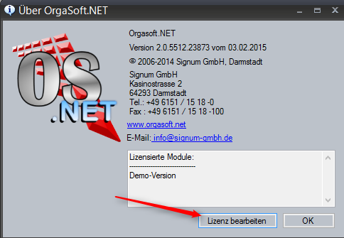 Ab Orgasoft.NET 2.0 wird die Lizenz über unseren Lizenzserver abgefragt und kann beliebig erweitert werden. Sie haben die Möglichkeit direkt eine Lizenz zu kaufen, zu mieten, oder zu kündigen.