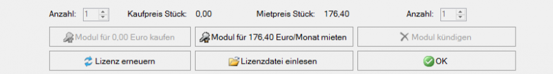 In dem Lizenzfenster haben Sie nun die Möglichkeit die Lizenz zu kaufen, mieten oder zu kündigen, oder zu erneuern.