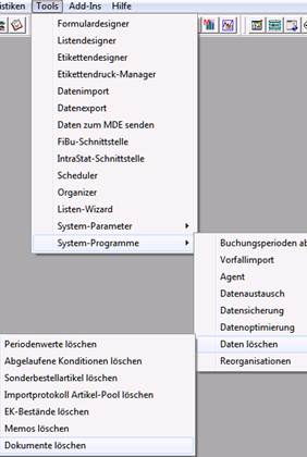 "Um Dokumente zu löschen gehen Sie bitte über „Tools->Systemprogramme->Daten löschen->Dokumente löschen“. "