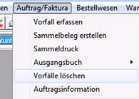 Vorfälle können Sie unter dem Menüpunkt „Auftrag/Faktura“ löschen.