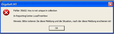 Reporting Center: Meldung "Key is not unique in collection" wurde erstellt von mos