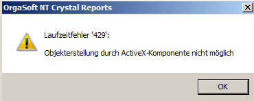 Nach der Neuinstallation von Orgasoft auf einem Rechner erhalten Sie die folgende Fehlermeldung beim Aufrufen eines Reports: