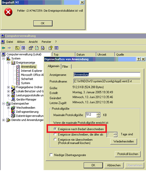 Ereignisprotokolldatei ist voll wurde erstellt von Anonymous