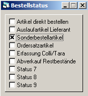 Sie können einen bereits bestehenden Artikel zu einem Sonderbestellartikel machen, indem Sie im Bestellstatus das entsprechende Häkchen setzen: