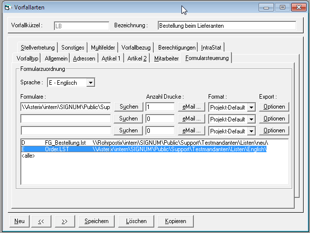 Ein Beispiel - hier ist bei Lieferantenbestellungen jeweils ein Formular für Deutsch und Englisch definiert: