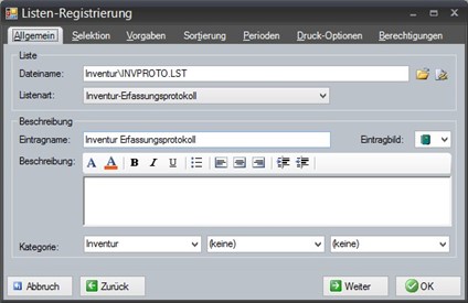 -Im Fenster "Listen-Registrierung" verweisen Sie unter Dateiname auf die Datei INVPROTO.LST
