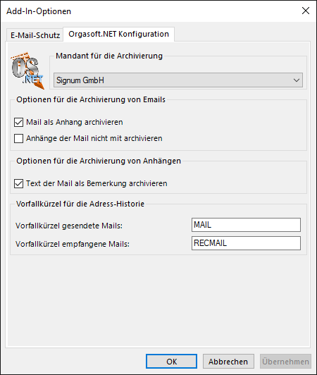 Um das Outlook-AddIn vollständig (Mails und/oder Anhänge archivieren) nutzen zu können, benötigen Sie das Modul-Bundle "papierloses Büro".