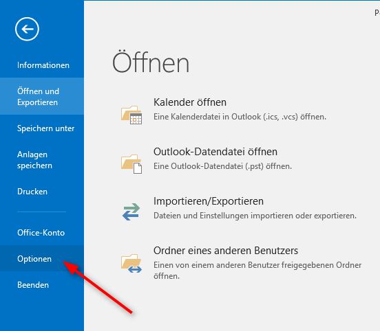 Beim nächsten Start sollte das AddIn dann von Microsoft Office Outlook erkannt werden. Die Konfiguration erfolgt über Datei/Optionen:
