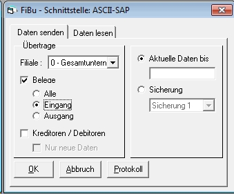 Ab Version 5.4.15 kann man die Übergabe der Fibu-Belege getrennt nach Ein- und Ausgangsrechnungen vornehmen.