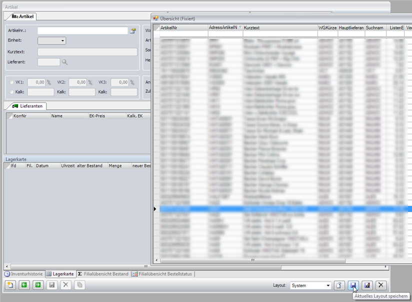 Wenn man den Container (z.B. Stammdaten\Artikel) dann wieder öffnet und die fixierte F2-Hilfe aufruft, so bleibt diese im Vordergrund geöffnet - natürlich nur solange man nicht in den Container selbst klickt. So kann man in der Übersicht verschiedene Datensätze per Doppelklick nacheinander ansteuern und im Container anzeigen lassen.