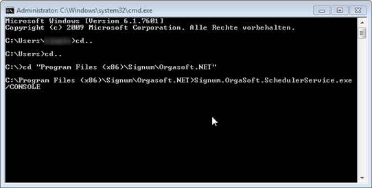 -im nun geöffnetetn CMD Fenster verzweigen Sie in das Arbeitsplatzverzeichnis von Orgasoft.NET.