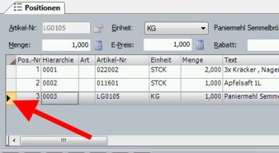 Positionen können nun einfach verschoben werden, indem Sie die zu verschiebende Zeile mit der linken Maustaste halten und an die Stelle ziehen, an der Sie diese Zeile haben möchten.