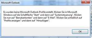 "Es wurden keine Microsoft Outlook-Profile erstellt. Klicken Sie in Microsoft Windows auf die Schaltfläche "Start"..........