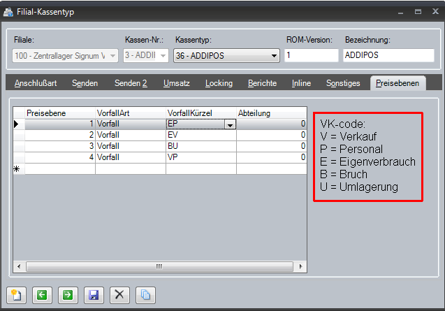 Im Umsatz wird außerdem noch ein Verkaufscode gesendet, der in Orgasoft.NET in Nummern für die Preisebenen übersetzt wird. Hiermit werden dann die Vorfälle zugewiesen. (Für Sonderfälle kann hier außerdem die Userquery UserPrePosBooking zu Hilfe genommen werden.)