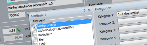 Spezielle Produktmerkmale oder Beschreibungen eines Artikels werden in Orgasoft.NET meistens über die Multifunktionsfelder zugeordnet. Allerdings stoßen Sie hier spätestens dann an Ihre Grenzen, wenn Sie z.B. eine Mehrfachauswahl wünschen. Eine Lösung bieten Ihnen nun die Attribute, mit denen Sie diese Beschreibungen und Merkmale der einzelnen Artikel noch detaillierter definieren können. Ein Beispiel hierfür sind Artikel, deren enthaltene Allergene aufgrund der Lebensmittelverordnung ausgezeichnet werden müssen. Legen Sie dafür ein Attribut mit den verschiedenen Allergene an und wählen Sie dann pro Artikel nur noch die passenden Werte aus.