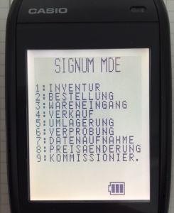 Als erstes fällt auf, dass die Schriftgröße geändert wurde, damit die einzelnen Punkte wieder besser lesbar sind. Durch diese Änderung stehen jetzt auch mehr Zeilen zur Verfügung, so dass Informationen, die bei der Erfassung bisher durch die nächste Eingabe überschrieben worden sind (wie z.B. der Preis oder der Lagerort), sichtbar bleiben. Außerdem gibt es die Möglichkeit, per Festwert (MDE/SendeArtikelInfoText) eine weitere Zeile mit Artikelinformationen zum MDE zu senden. Hierzu wird das Feld „Info“ der temporären Tabelle MdeArtikel<AP> verwendet. Falls dort nichts eingetragen wird, wird der Kurztext des Artikels in der zweiten Zeile fortgesetzt. Im MDE ist dieser zusätzliche Text in der SYSOPT Byte 11 = 1 zu aktivieren.