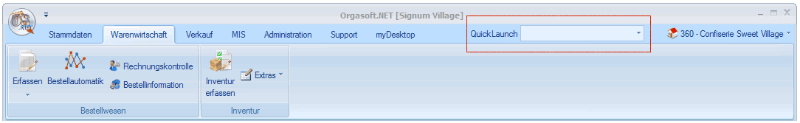 In der Menüleiste von Orgasoft.NET gibt es das Eingabefeld QuickLaunch.