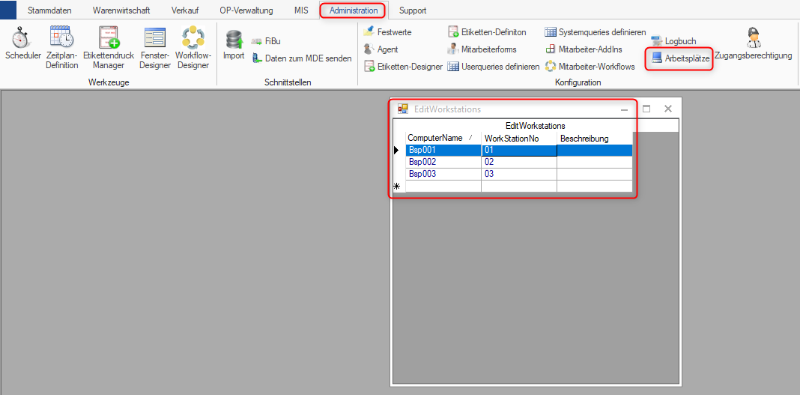 Orgasoft.NET bietet Ihnen die Möglichkeit (ab der Version 3.1.6992.33049 vom 22.02.2019) die Workstations-Tabelle in Orgasoft.NET für Ihren Systemadministrator (ggf. der Benutzer "SYS") ganz einfach in der Programm-Oberfläche zu pflegen: