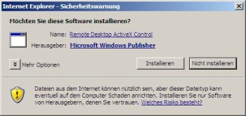Bei der Installation von "Remote Desktop ActiveX Control" werden Sie, je nach Betriebssystem Ihres Rechners, gefragt, ob Sie die Software installieren möchten.