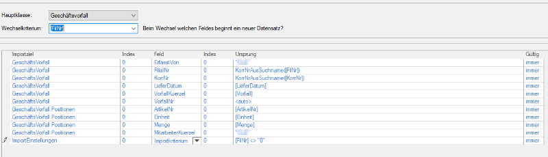 ich habe einen Import für den Vorfal LB erstellt. Ich habe unter anderem eine Spalte für die Filialnummern und eine Spalte für die Lieferanten. Das Wechselkriterium habe ich auf der Filialnummer. Das läuft soweit auch alles wie gewünscht. Jetzt kann es folgende Situation geben. Die Filiallummer bleibt gleich und die KorrNr des Lieferanten ändert sich, weil ein neuer Lieferant folgt. Hier würden jetzt beide lieferanten in einer LB erfasst, was falsch wäre. Gibt es eine Möglichkeit das Wechselkriterium so zu setzen, das erst ein neuer Vorfall erzeugt wird, wenn die Filialnummer und die KorrNr wechseln?