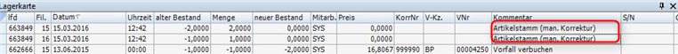 Woher stammen die Einträge der ArtikelLagerKarte man. Korrektur