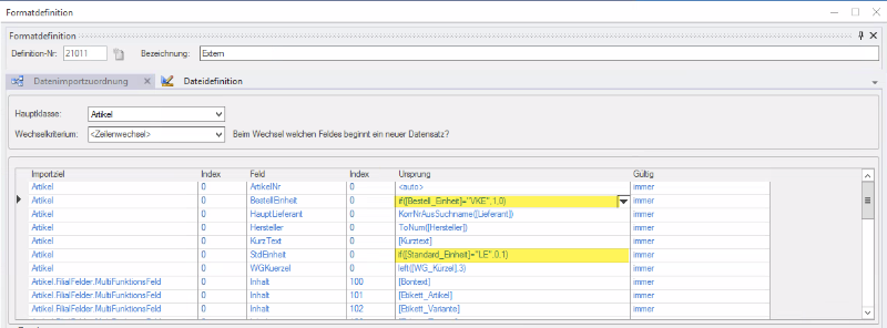 Wen ich die Bestell- und Standardeinheit fest definiere (1 bzw. 0) klappt der Import super und es werden beide Einheiten angelegt. Versuche ich das Ganze über eine Bedingung zu lösen wird nur eine Einheit angelegt. ich habe verschiedene Kombinationen probiert und lande immer wieder bei gleichen Fehler.